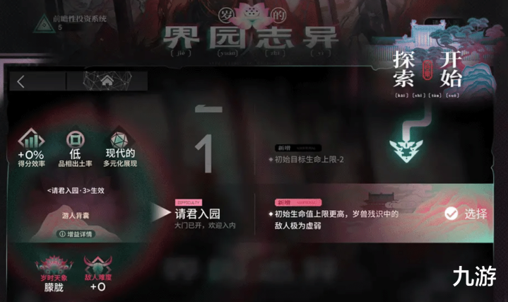 难度:在本次玩法中,“请君入园”提供15个扩展难度等级,每完成一个难度等级时,下一个难度等级也会随之解锁,等级提升后会面临更加严峻的战斗环境,难度提升会遇到难度更大的岁时,入园等级达到3,6,9级时,多元奇物的效果会有一定程度的提升,部分分队效果也会有所提升。